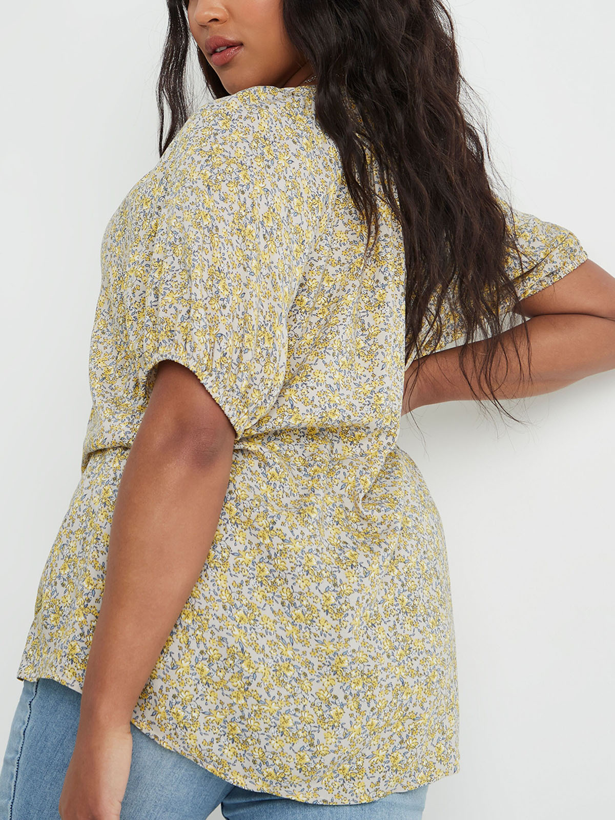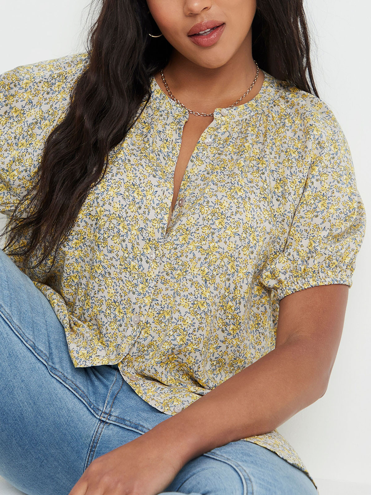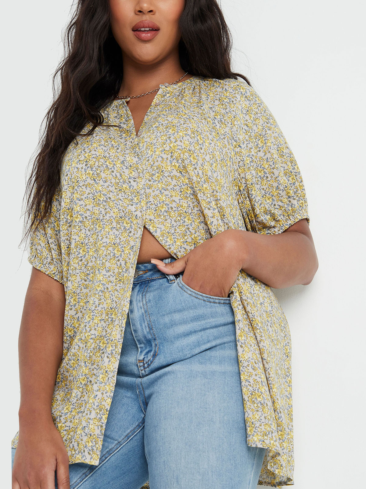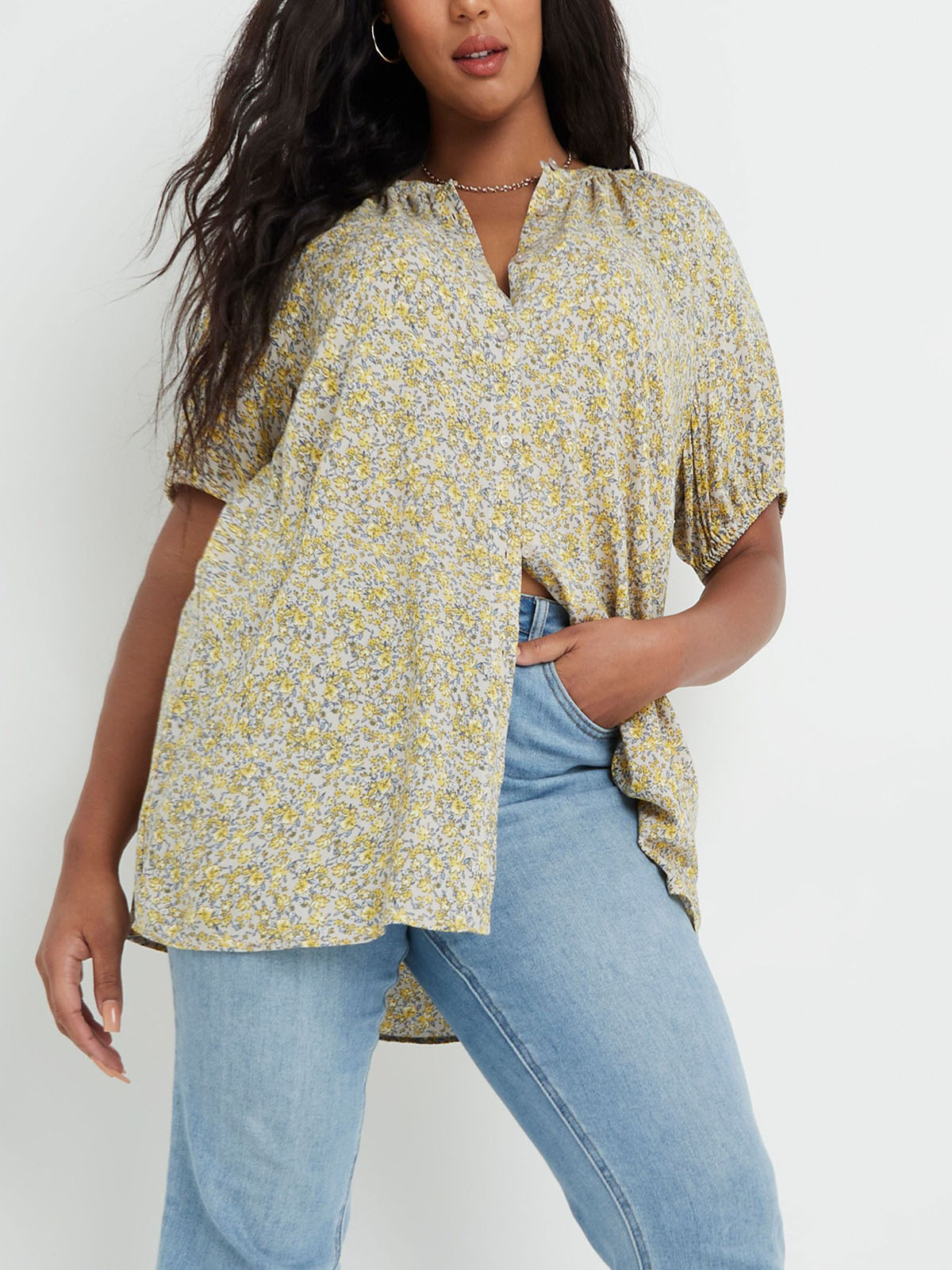 A brand new shape for your spring/summer wardrobe, this embroidered puff sleeve top is in a soft touch jersey fabric to provide the ultimate comfort without sacrificing your style. Featuring a beautiful ditsy print on a flattering, easy to wear shape, this style is a true must have! Length 28in.