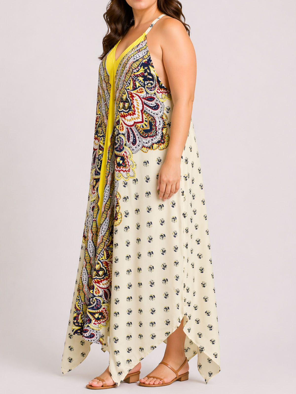 Sleeveless Scarf Print Hanky Hem Dress